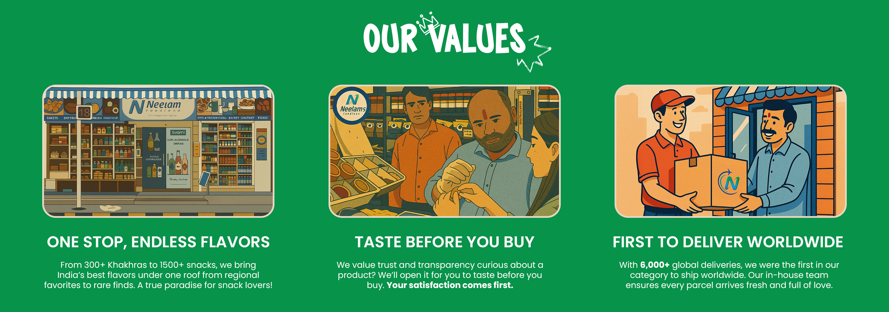 From Neelam snacks to household must-haves, we handle and ship your order with precision and care. Our courier service connects families and friends across India and worldwide.