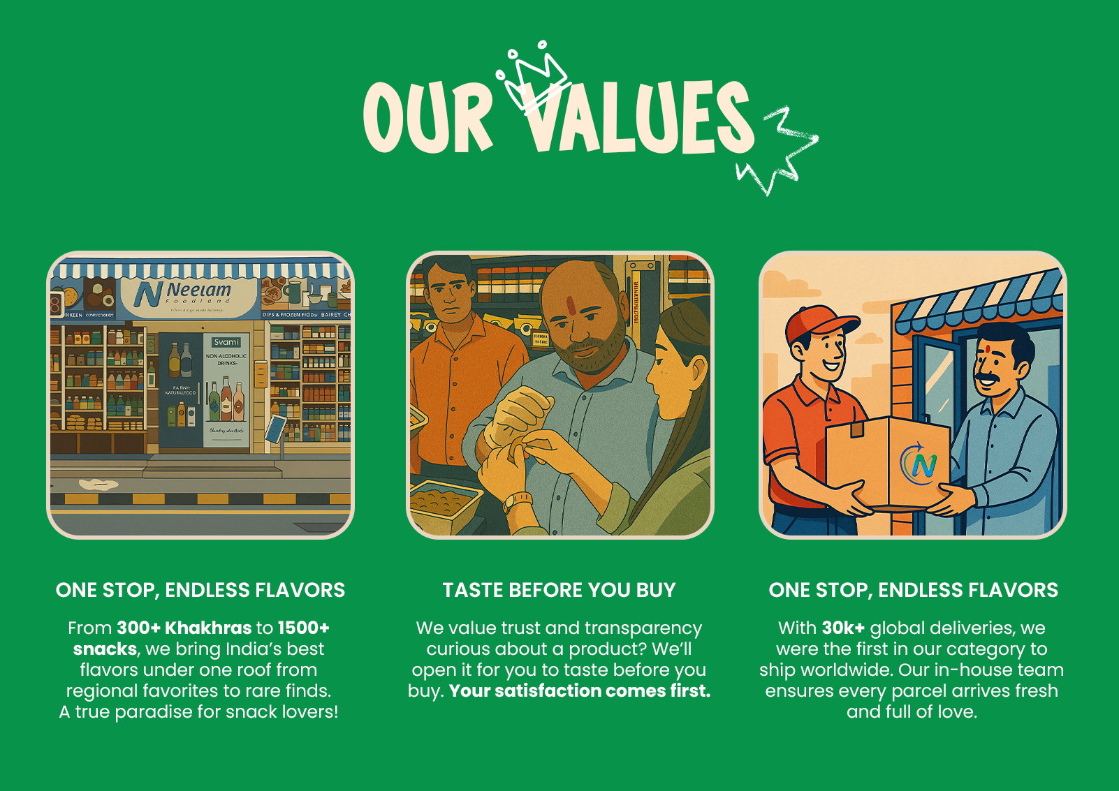 For over 45 years, Neelam Foodland has been a trusted name in premium Indian snacks and namkeen. Based in Khar, Mumbai, our retail store is just the start. We also offer in-house dehydration, vacuum packing for lasting freshness, and reliable courier services — serving both local customers and global clients with quality and care.