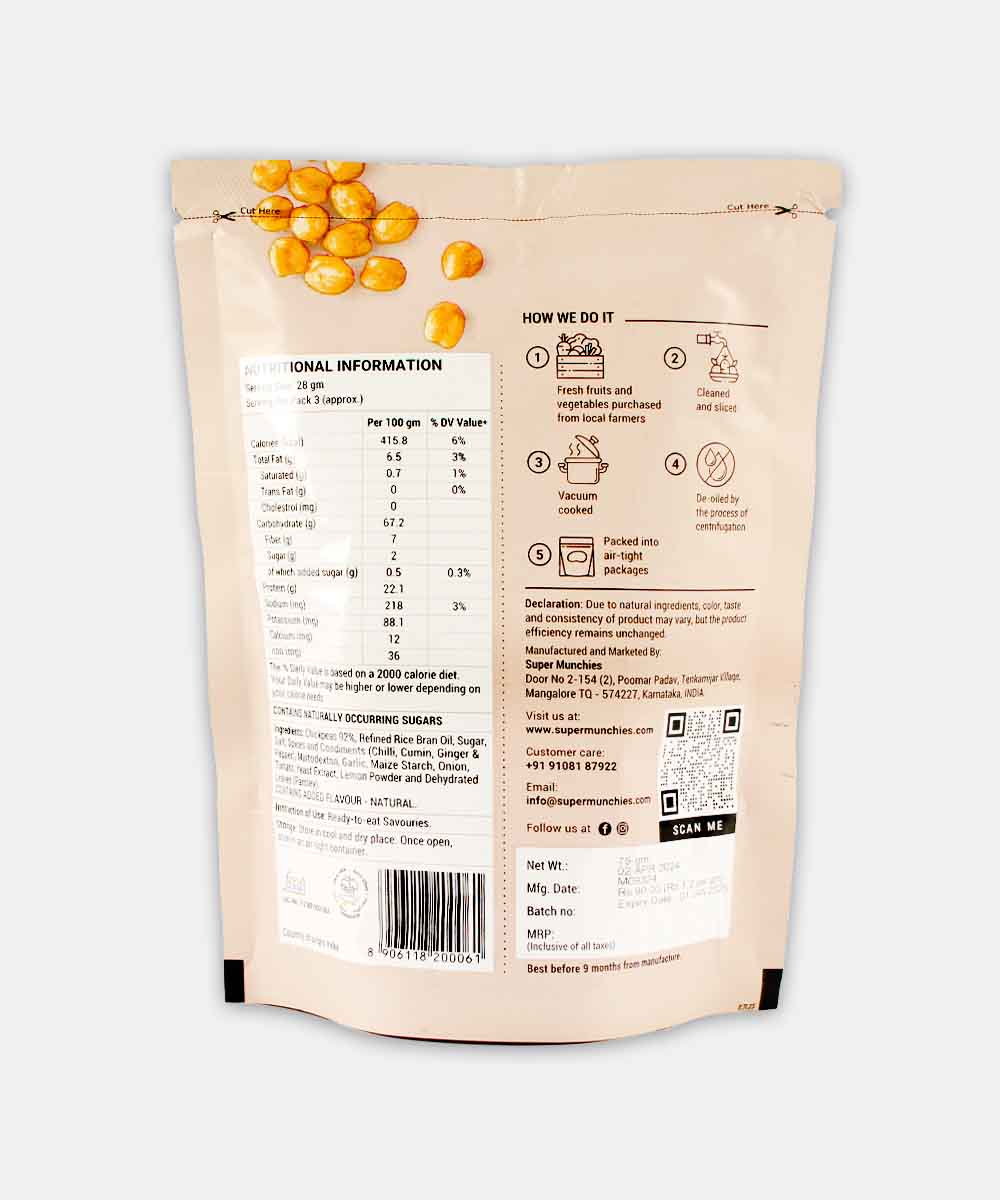 Super Munchies Vaccum Cooked Achari Chickpeas Vegan 75 Gm