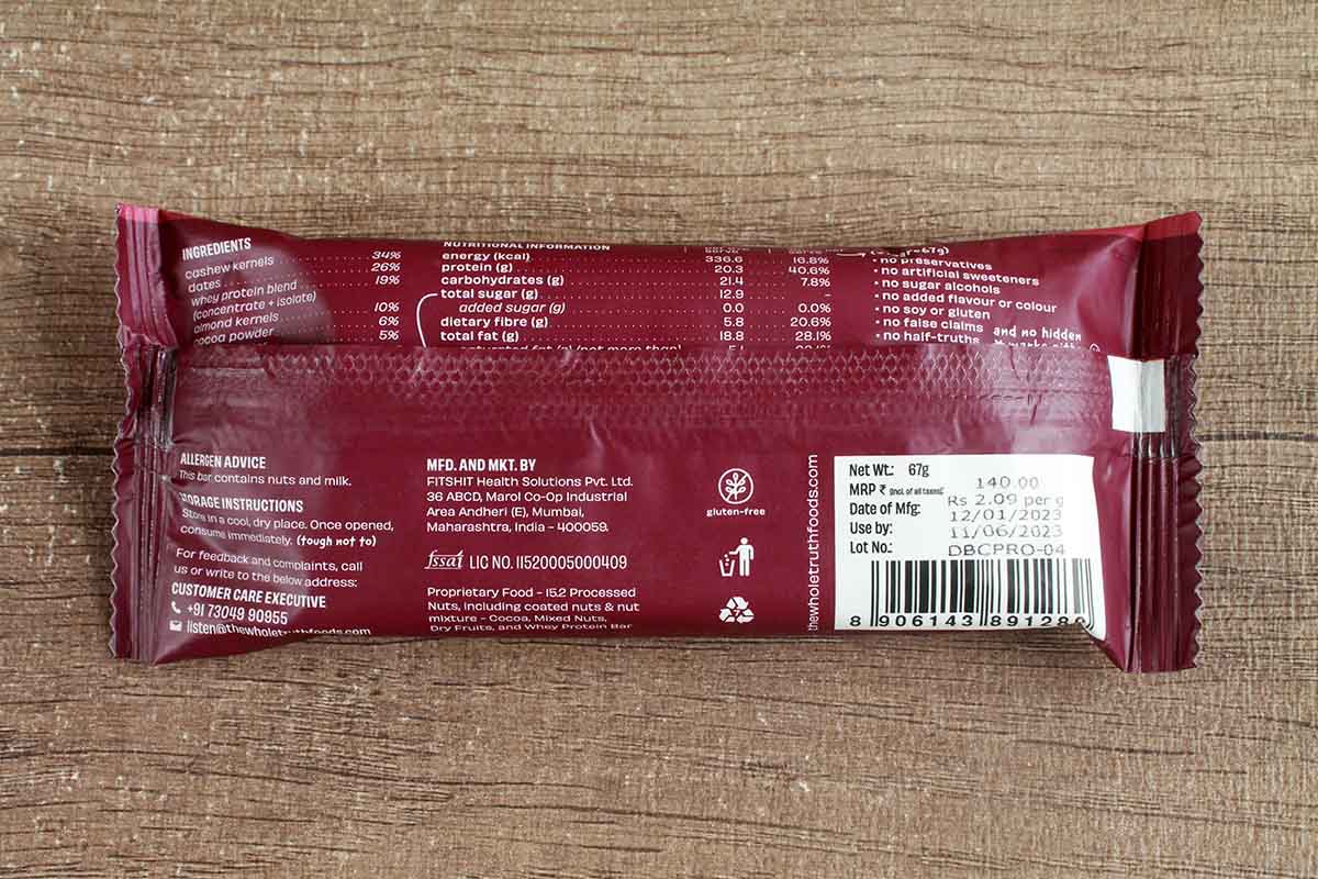 The Whole Truth Double Cocoa No Added Sugar Protein Bar 67 Gm