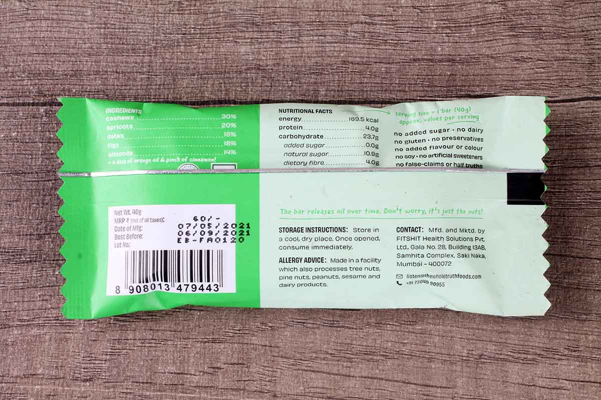 The Whole Truth Fig Apricot Orange Bar 40 Gm