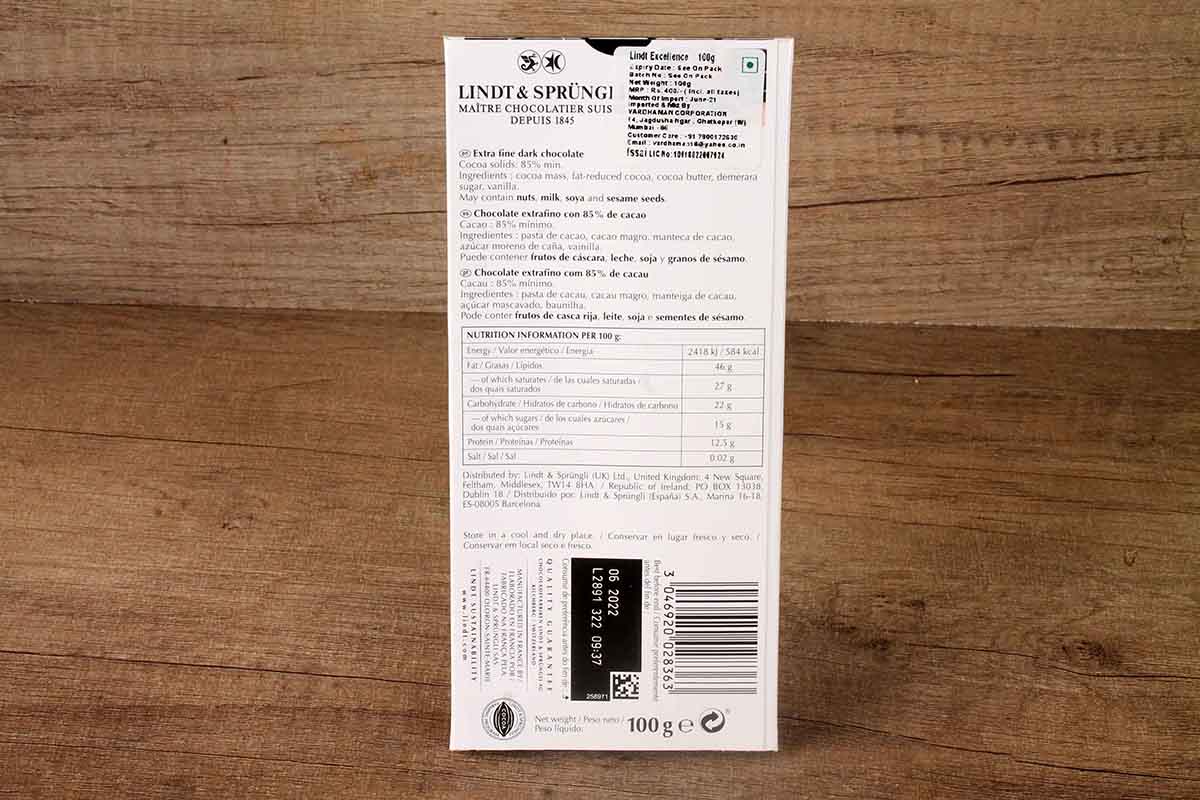 Lindt Excellence 85% Cocoa Robust Dark Chocolate 100 Gm